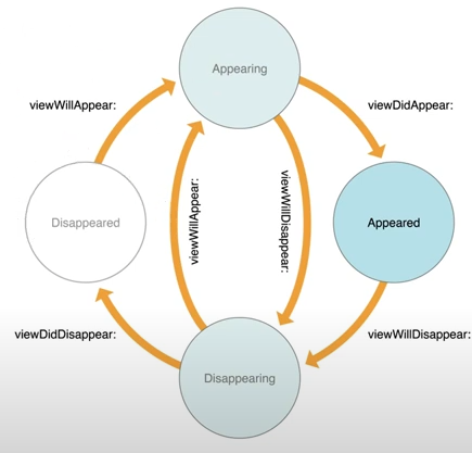 - Appeared(완전히 등장한 상태) : ViewController가 스크린 전체에 완전히 등장한 상태를 나타냅니다.
