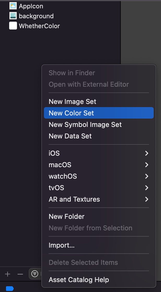 1. Assets 파일에 들어간 후에 image Set을 만들어 준다.