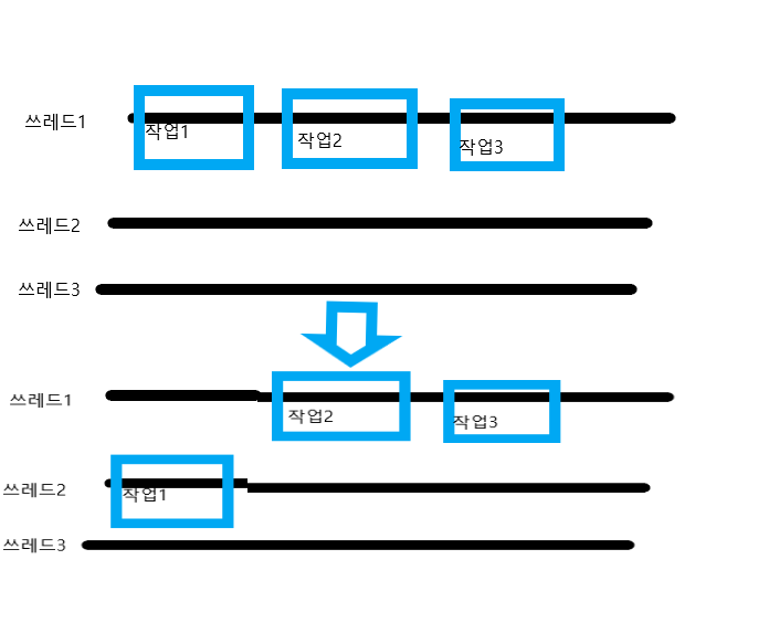 이게 무슨 이야기냐면은, 하나의 프로세스 내에서 동시적으로 여러개의 작업이 들어갈 수 있습니다.