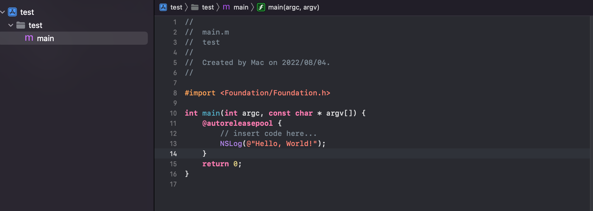 Xcode->new->macOS->Command Line Tool 순서대로 만들어서 클릭하여 준다.